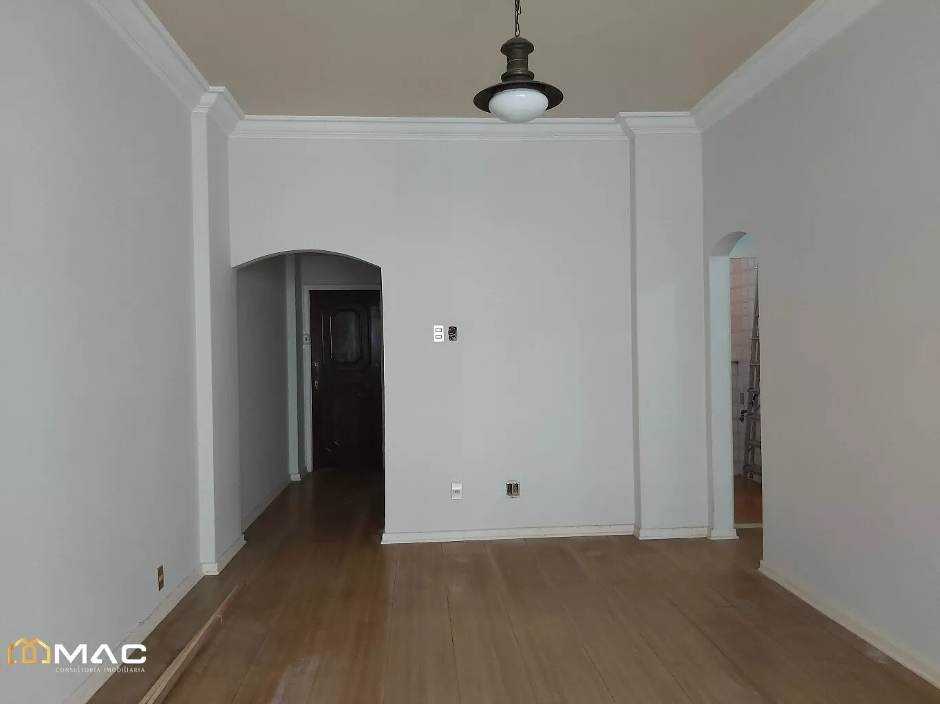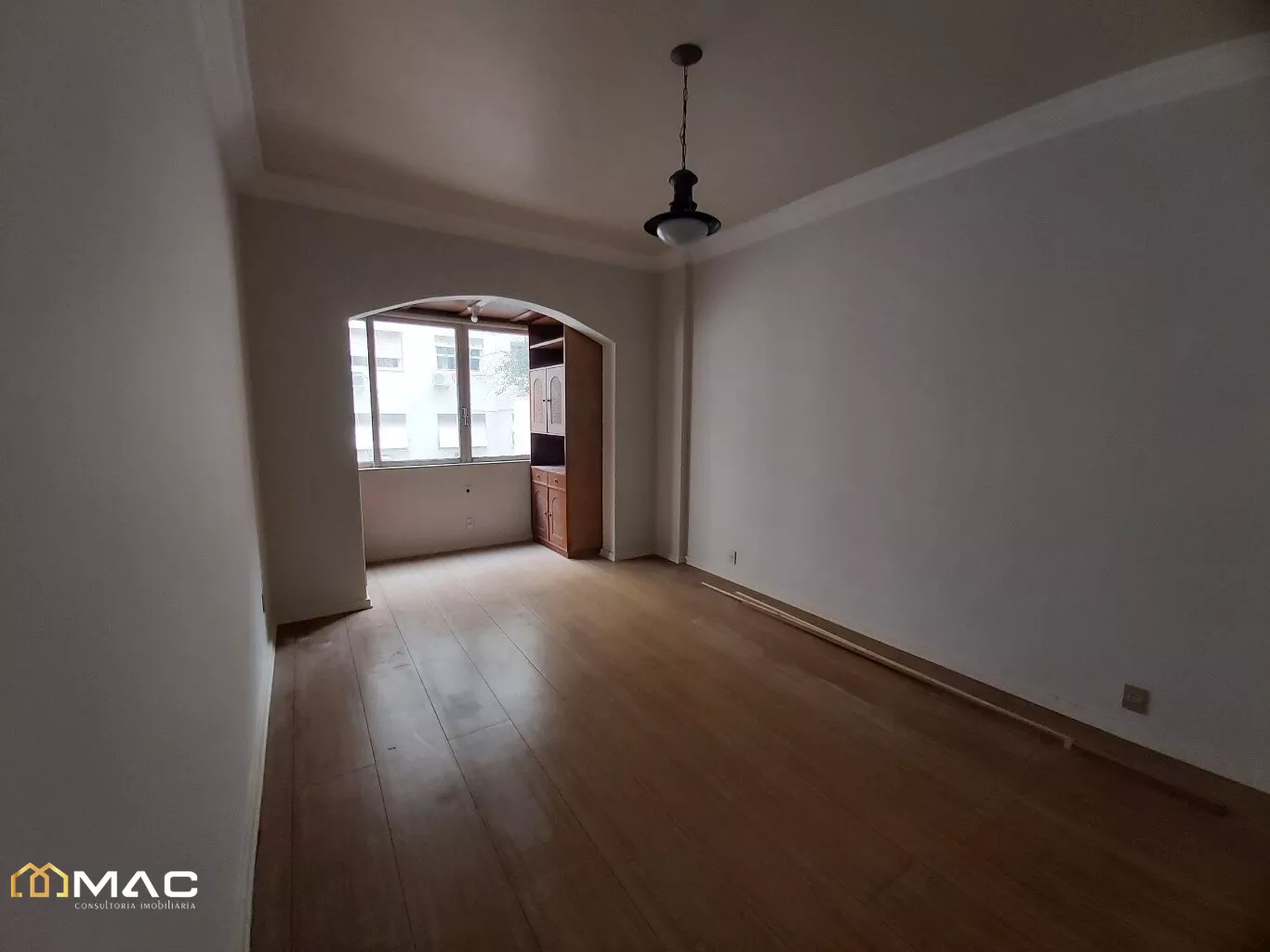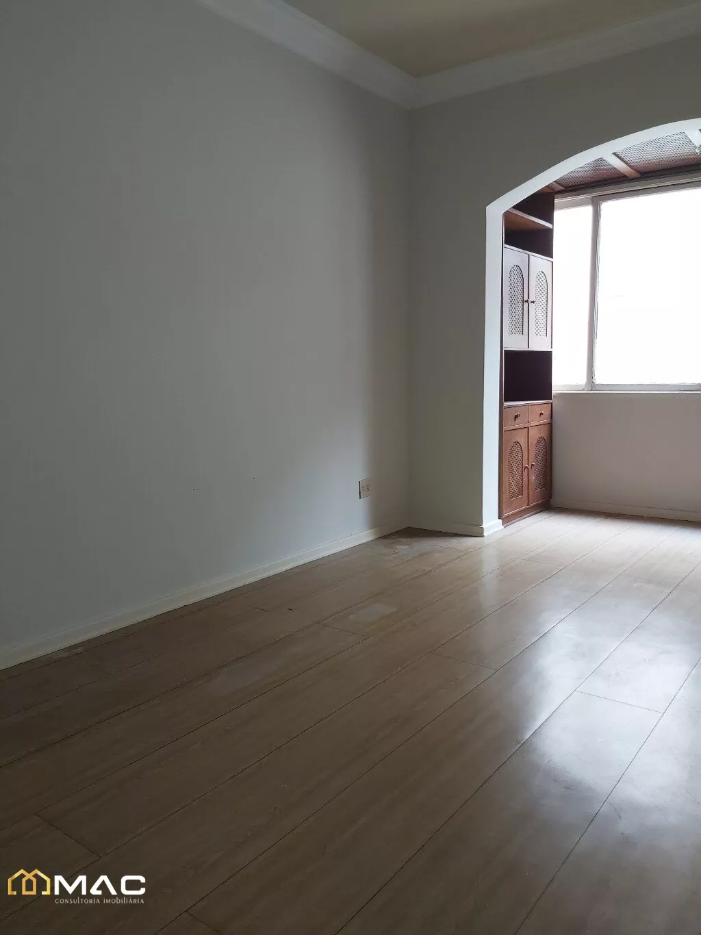 Sala ampla com 03 ambientes, piso laminado e janela grande