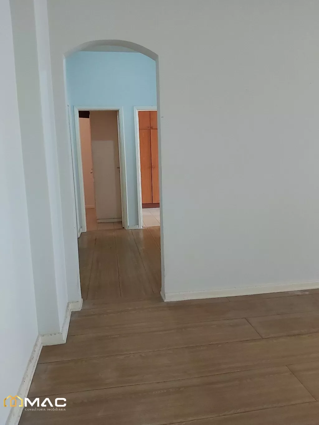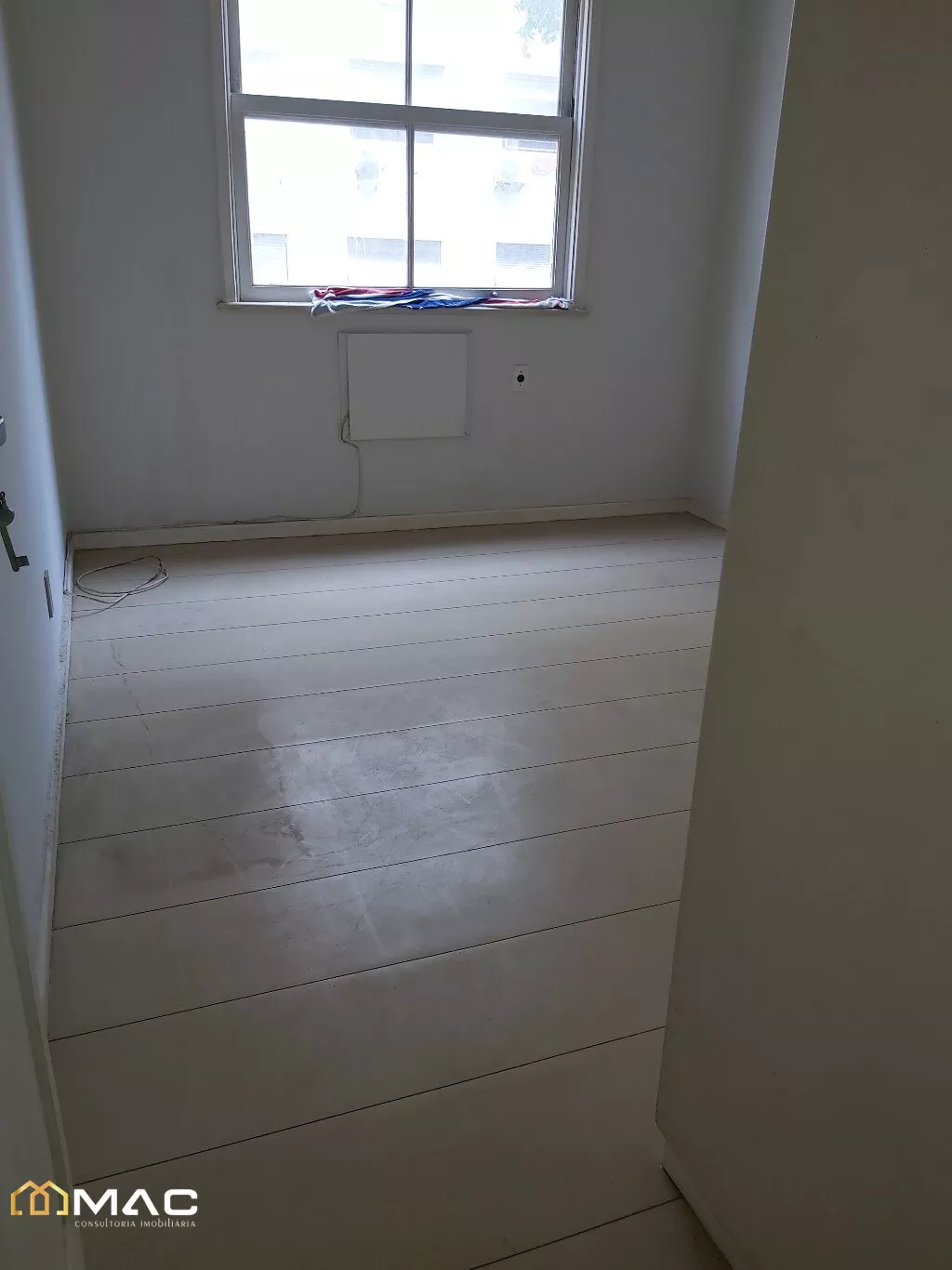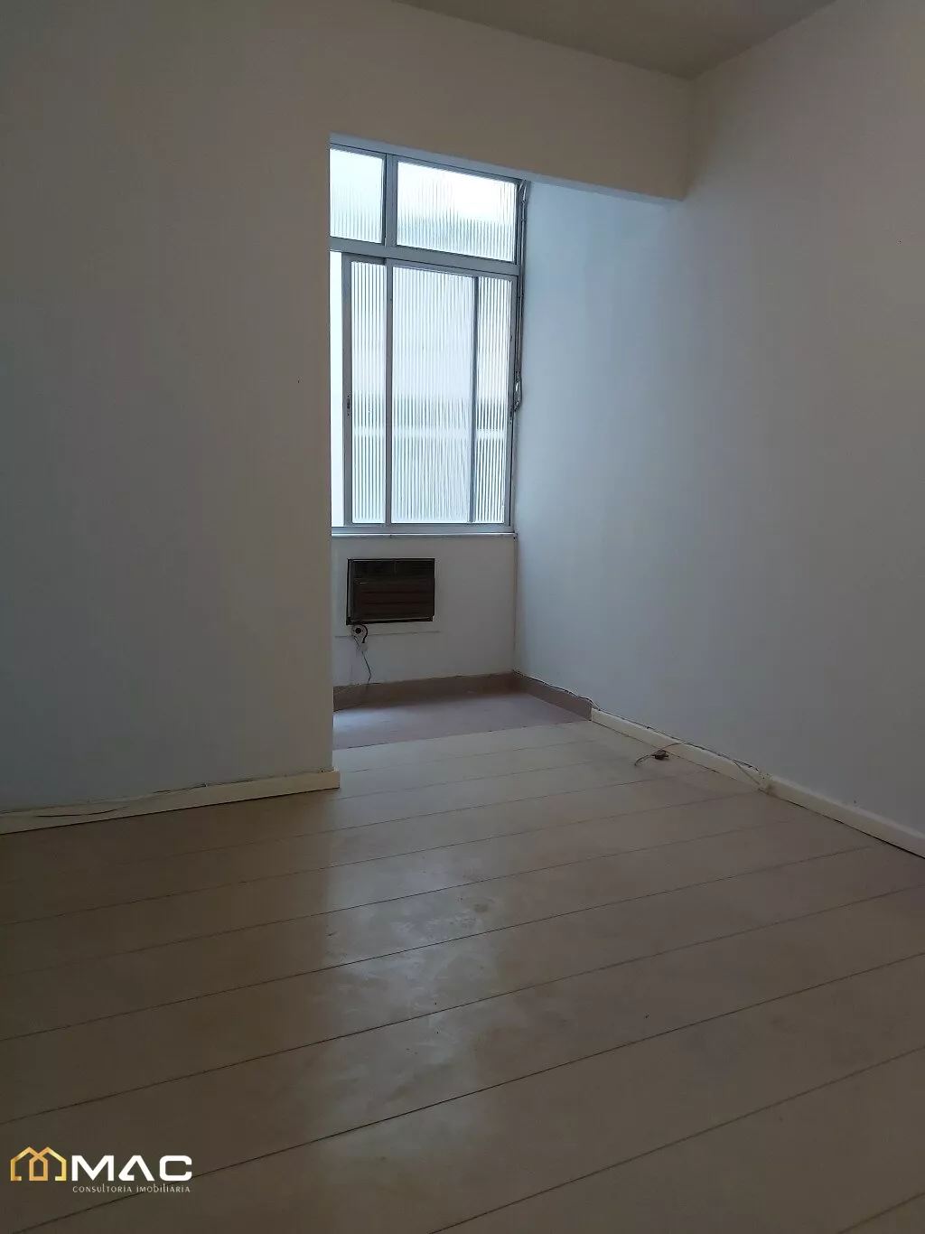 Sala ampla com 03 ambientes, piso laminado e janela grande
