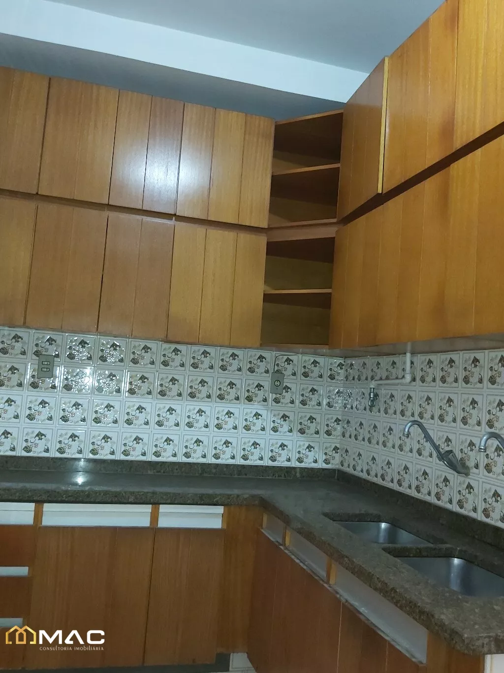 Cozinha ampla com armários planejados, bancada em granito.
