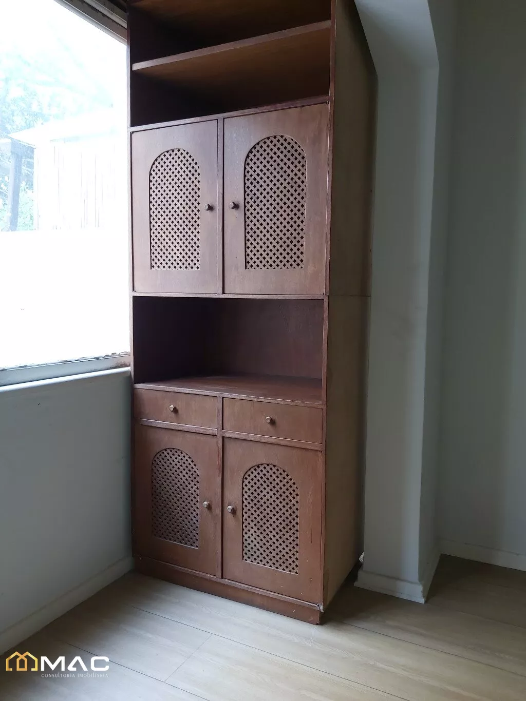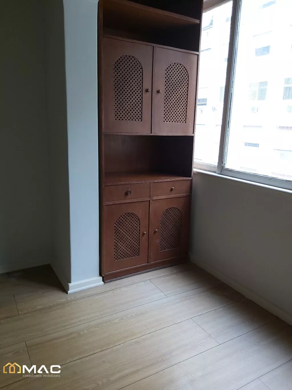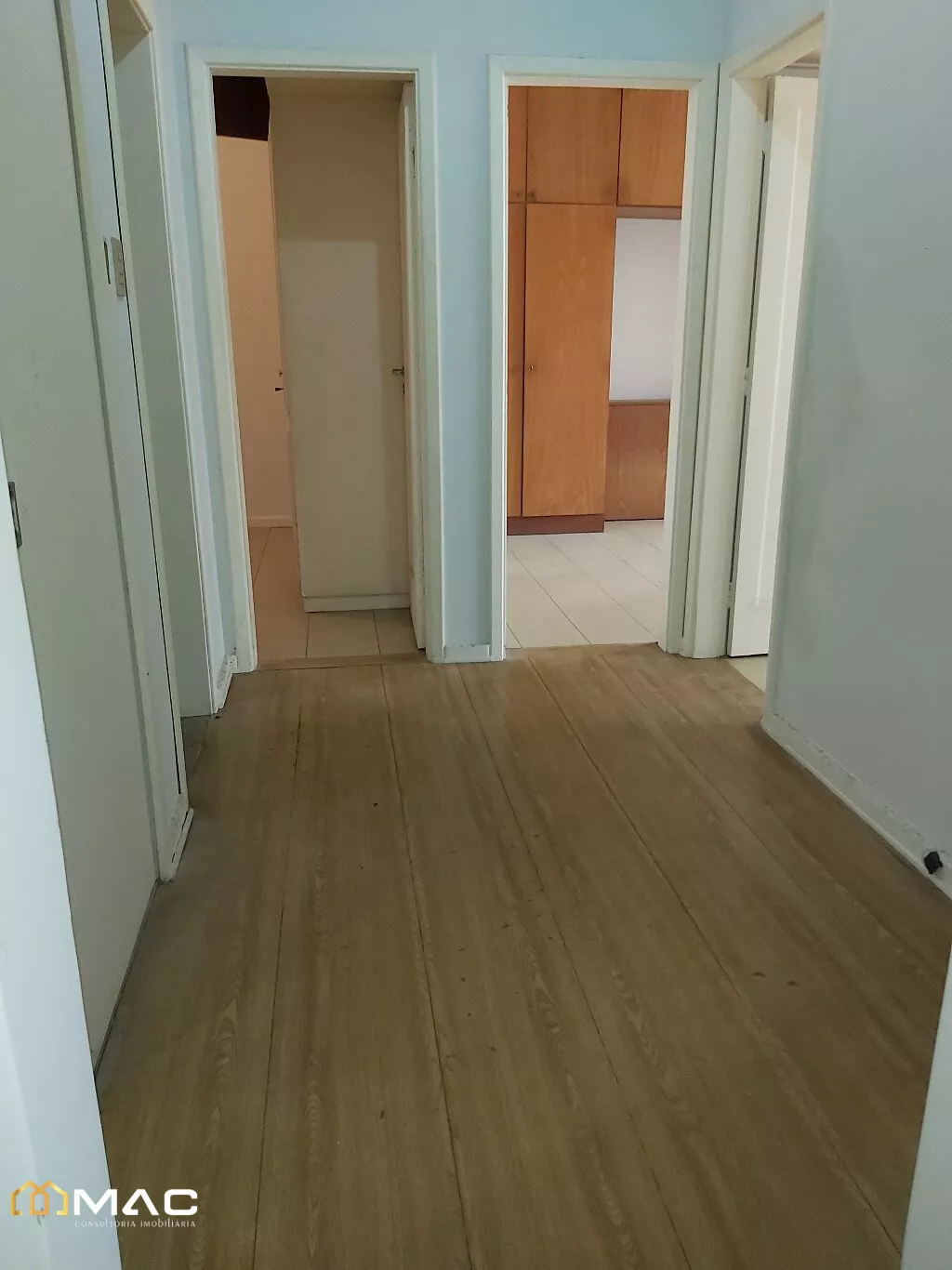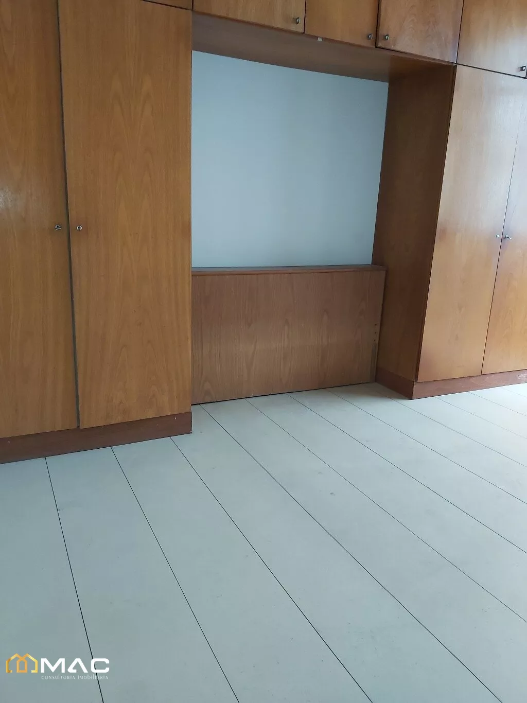 Apartamento com 03 quartos, de fundos, com armários embutidos, piso laminado.